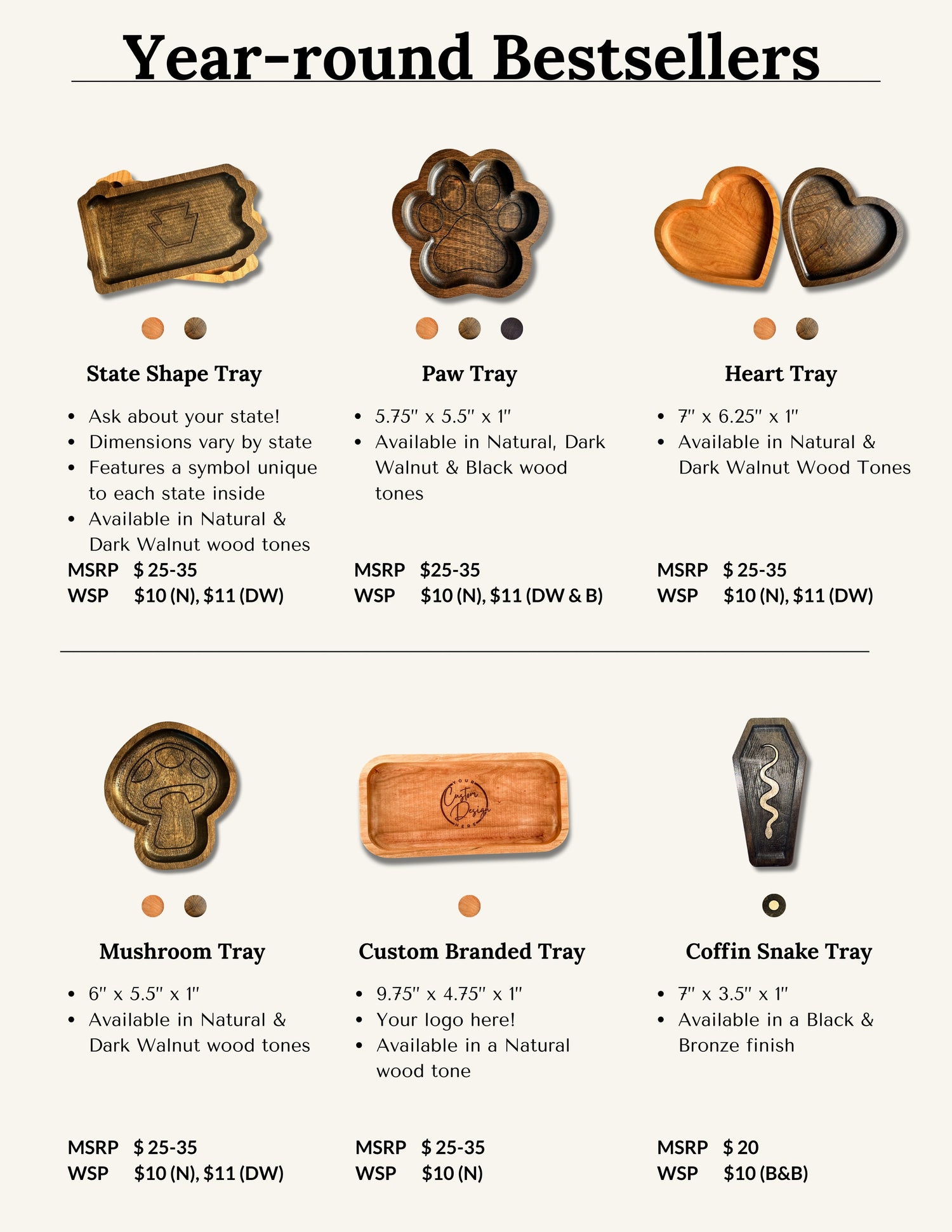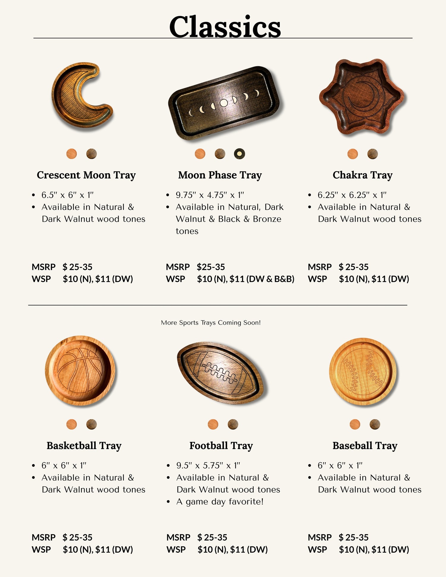 From game days to everyday, these designs connect with customers on a personal level. Sports trays are perfect for fan shops or gift stores, while celestial and seasonal styles keep your collection fresh year round.