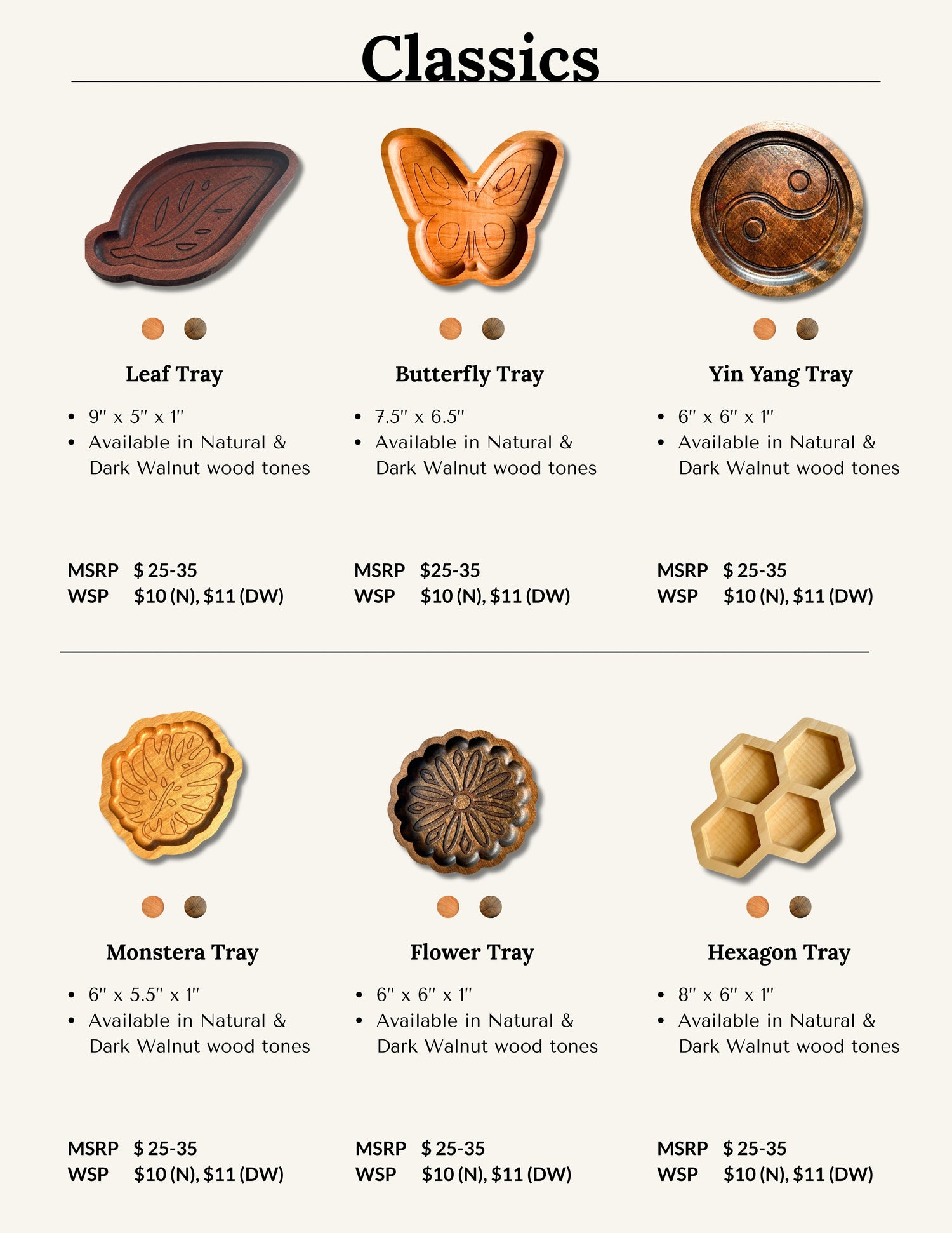 These are the shapes that never go out of style. Tried-and-true sellers that retailers reorder again and again. Designed to be versatile, sturdy, and giftable, these trays are easy to merchandise and always find a home with customers.